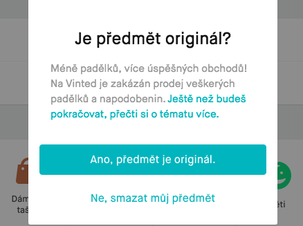 - Nikdy nenahrávej předmět, jehož originalitu nemůžeš potvrdit a nebo víš, že jde o padělek. Tím předejdeš dalším problémům s majiteli ochranných známek či partou Vinted.